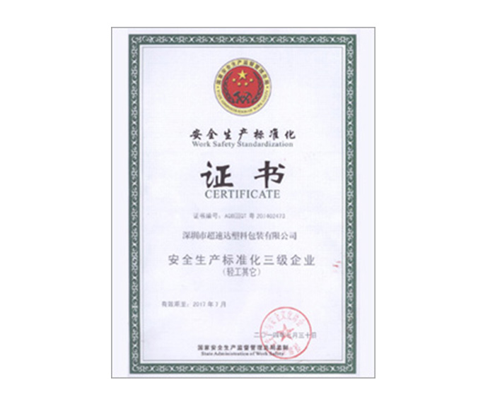 安全生產(chǎn)標(biāo)準(zhǔn)化證書